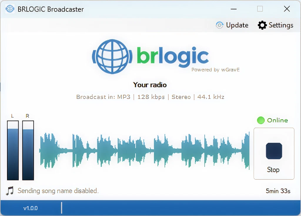 Desarrollamos nuestro propio software gratuito para facilitarte la vida. Solo copia y pega la clave de transmisión y tu radio estará al aire.