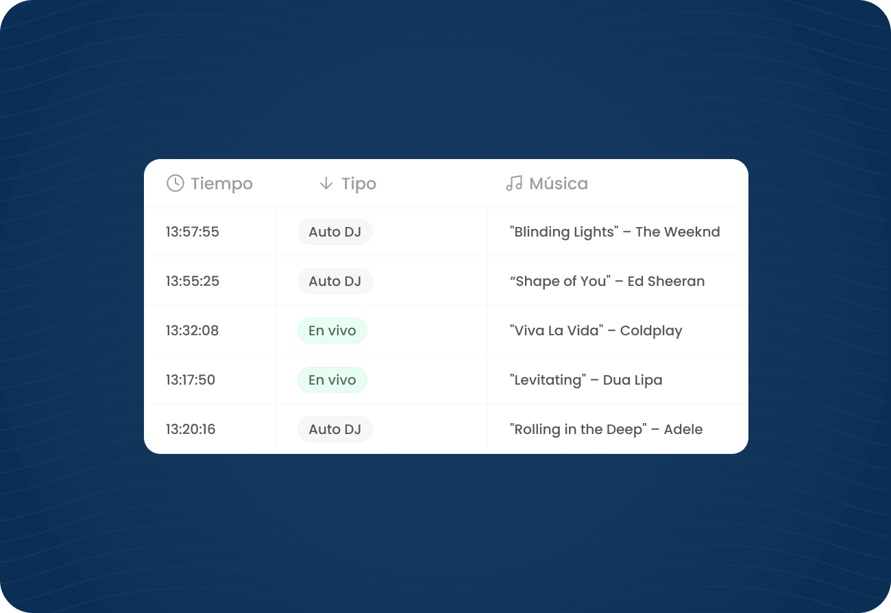 Envía tus audios, crea listas de reproducción y programa horarios: la plataforma se encarga del resto. Tu programación está al aire 24/7, sin necesidad de estudio físico o operador.